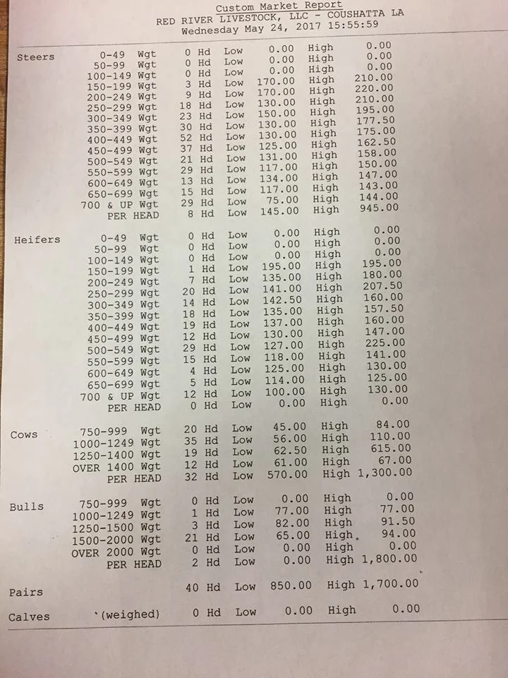 Red River Livestock - Coushatta, Louisiana Market report for Wednesday, May 24, 2017. Guest UserMay 25, 2017 Facebook0 Twitter LinkedIn0 Reddit Tumblr