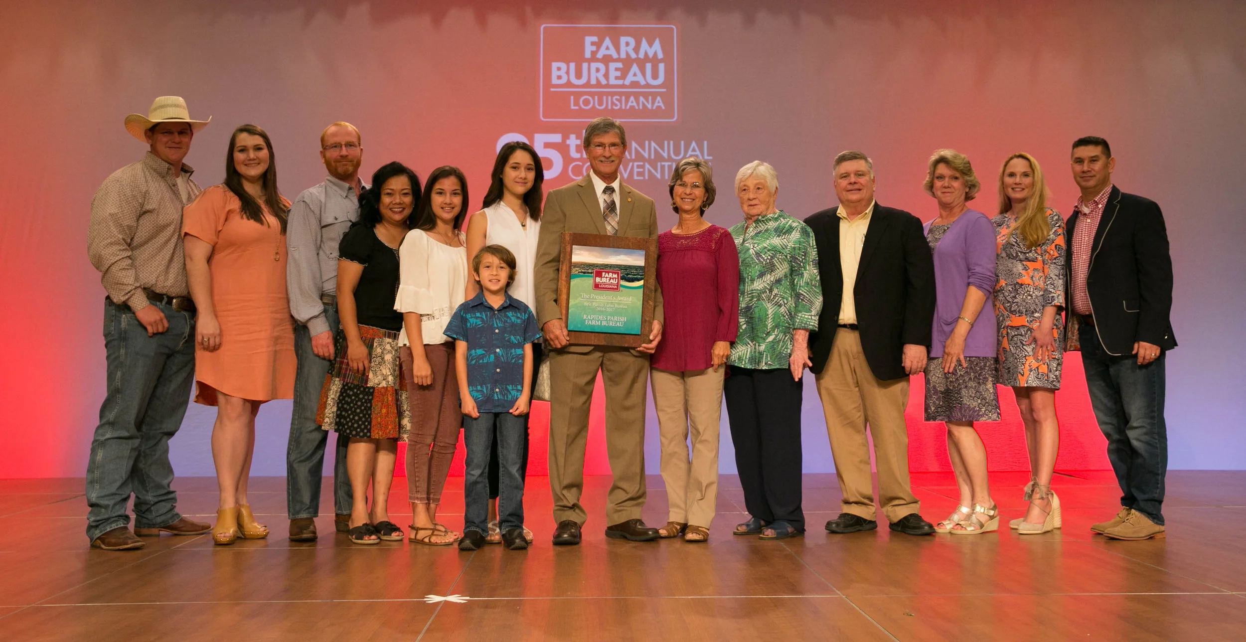 Rapides Parish President Bill Cheek accepted the award on behalf of the parish membership from Louisiana Farm Bureau President Ronnie Anderson. The award is the highest honor bestowed during the farm group’s annual convention and topped a list of award winners that included the state’s Young Farmer Achievement Award, the Outstanding Young Farm Woman award, the Excellence in Agriculture award and the Young Farmer and Rancher Discussion Meet winner.