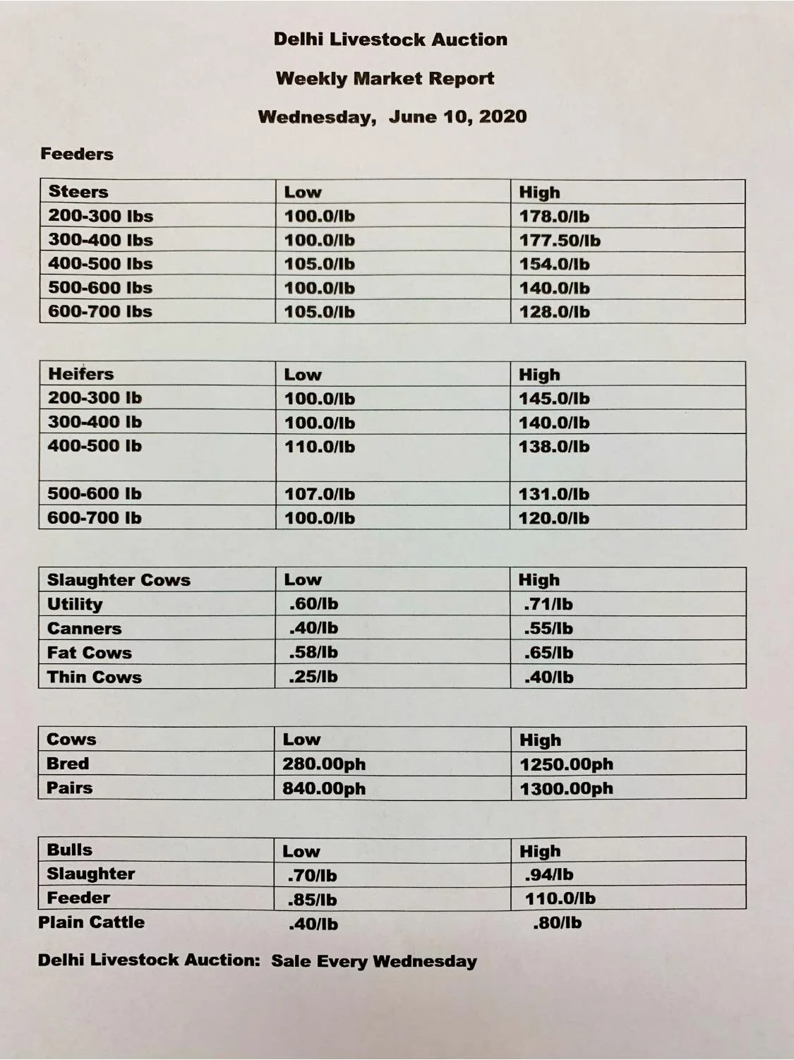 Delhi Livestock Auction, June 10, 2020 Avery DavidsonJune 15, 2020 Facebook0 Twitter LinkedIn0 Reddit Tumblr