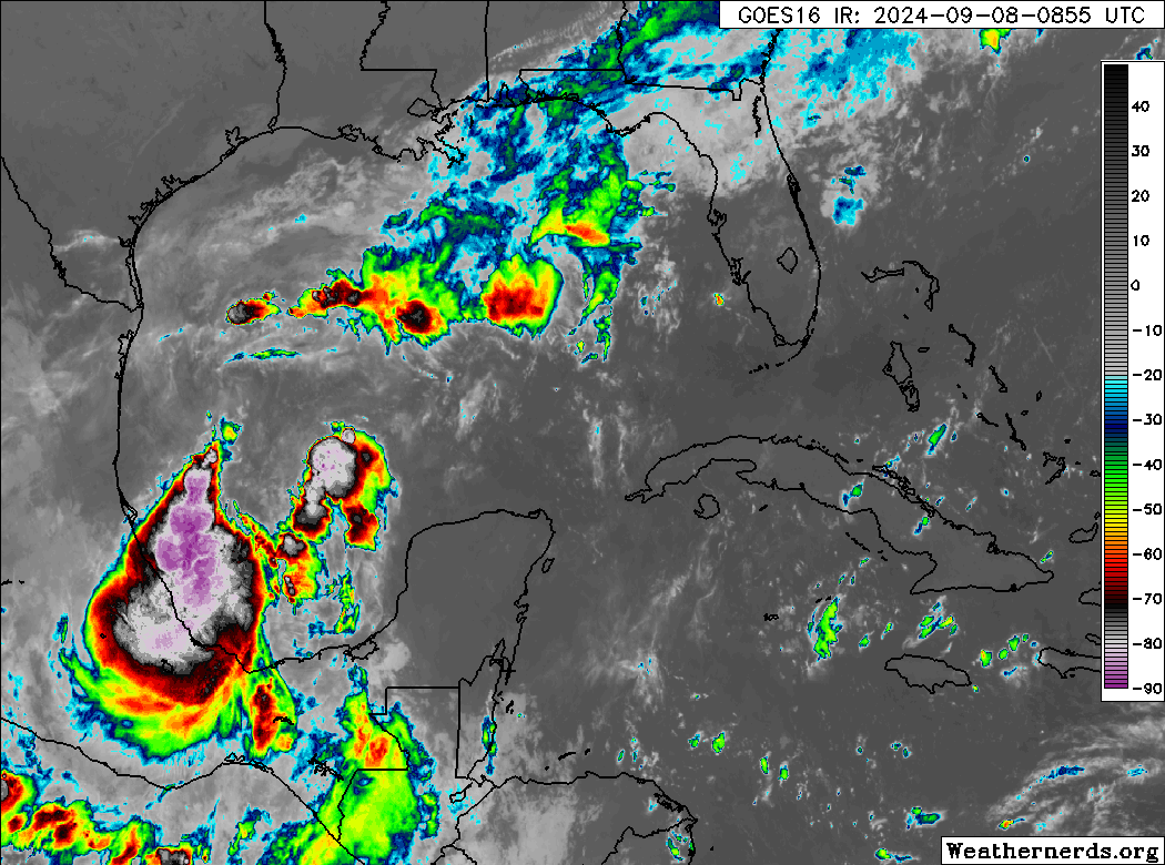 Invest 91L in the SW Gulf (Bay of Campeche) remains disorganized but conditions will be favorable for development as the disturbance slowly drifts north-to-NW over the next 2-3 days.