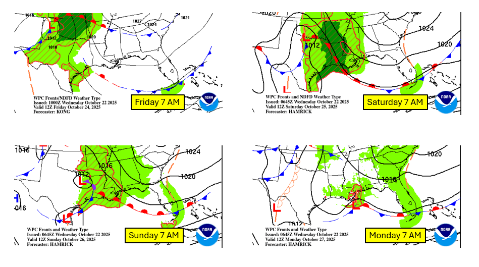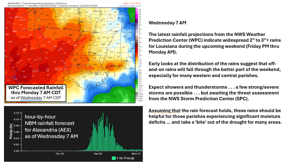 The latest NWS forecast calls for a storm system to move through the Lower Mississippi Valley this weekend ... and unlike some of our recent frontal passages, this one looks to deliver significant rains across most of the Bayou State.