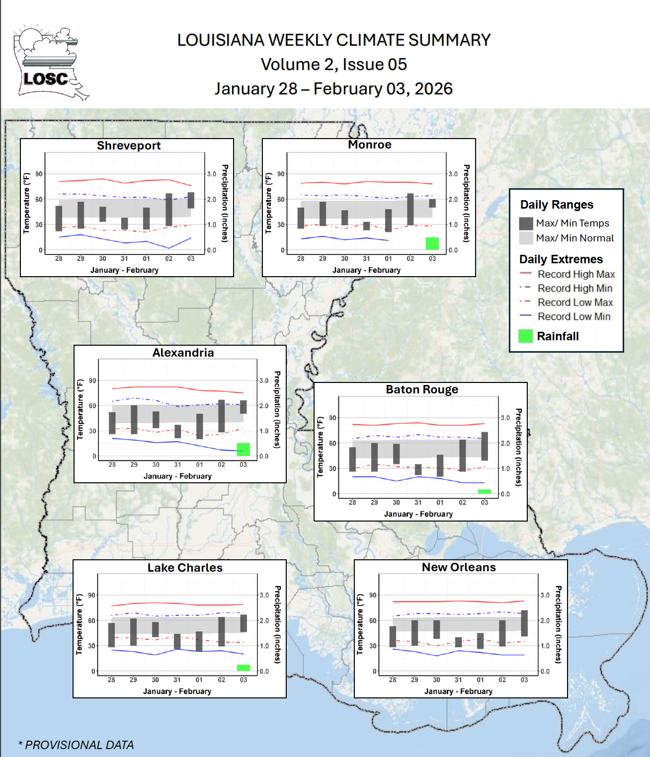 Louisiana Weekly Climate Summary - January 28 – February 03, 2026