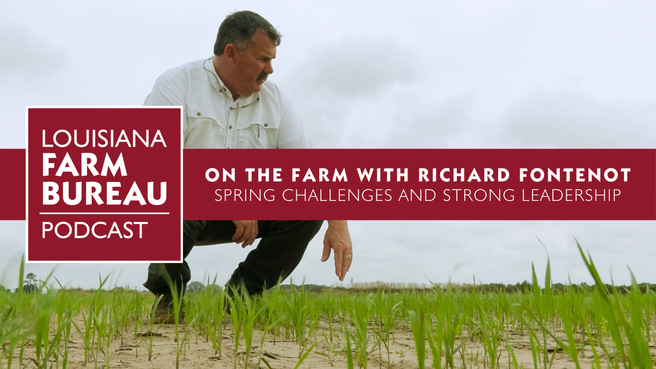 Fontenot joined host Karl Wiggers on the latest episode of the Louisiana Farm Bureau Podcast from his farm, where the two discussed spring planting, the need for a new farm bill and the importance of keeping agriculture’s voice strong at every level.
